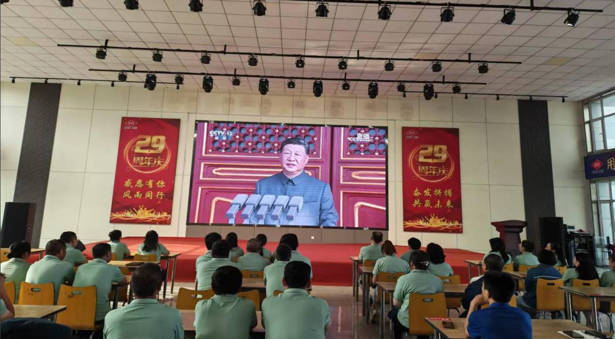員工們?nèi)褙炞ⅲJ(rèn)真聆聽中共中央總書記、國家主席、中央軍委主席習(xí)近平的重要講話。“正義必勝、和平必勝、人民必勝”的鏗鏘宣言,讓大家感受到磅礴力量,民族自豪感和愛國之情油然而生。